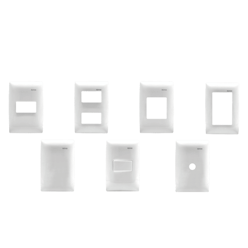 Placa 1 Módulo Horizontal Blanco Royer 100, Placa De 2 Módulos Distanciados Blanco Royer 100, Placa De 2 Módulos Juntos Blanco Royer 100, Placa De 3 Módulos Blanco Royer 100, Placa Ciega Blanco Royer 100, Placa 1 Módulo Con Interruptor Sencillo Blanco Royer 100, Placa Salida De Cables Blanco Royer 100